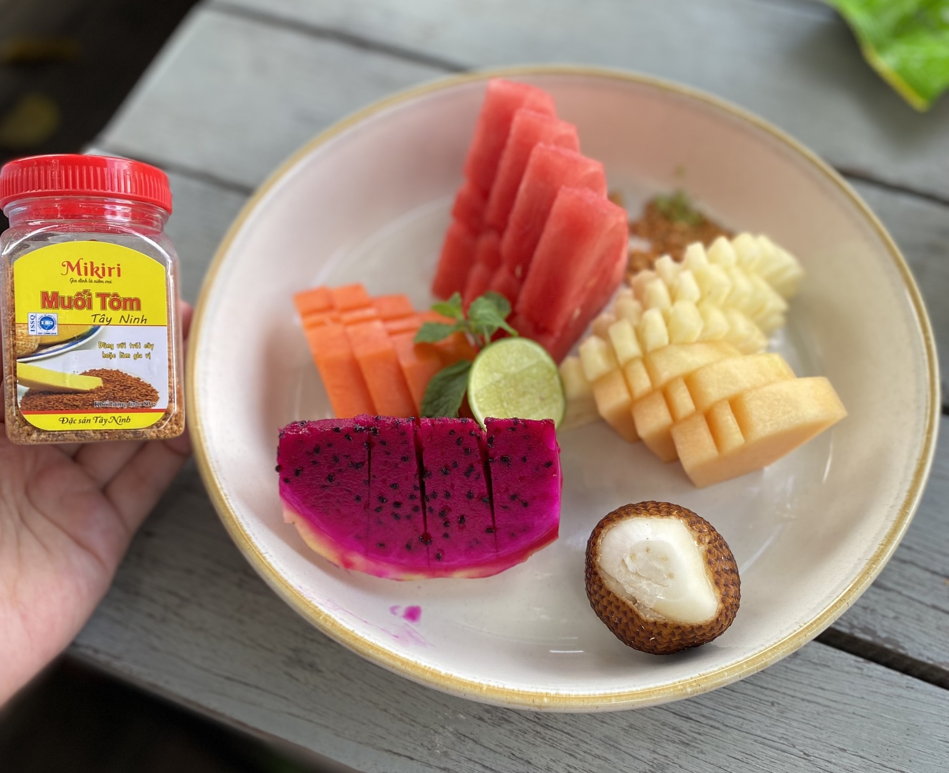 Nhắc đến các loại trái cây như xoài, cóc, ổi,...thì lại không thể thiếu vị muối tôm. Với muối Mikiri, khi chấm thì vị chua chua ngọt ngọt hòa cùng vị cay mằn mặn từ muối giúp thực khách không thể nào quên được.